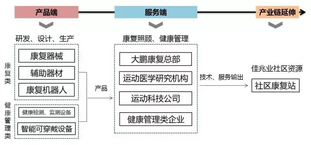 那么,基于区位特征和企业自身资源,如何构建康复产业链?如图所示: